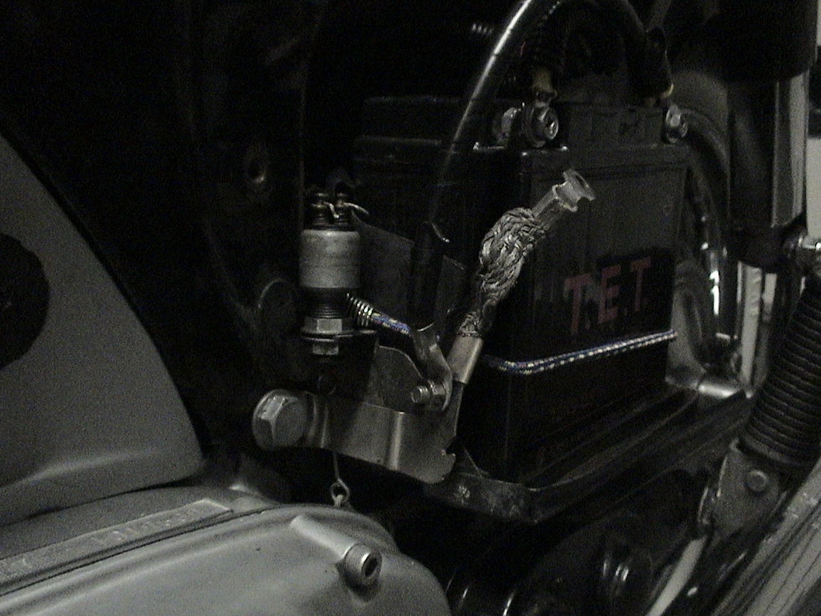 Pay no attention to the extra black wire attached to the middle...my battery has the poles reversed from where they are supposed to be, and I had to run the ground wire all the way across to the back end of the battery.
