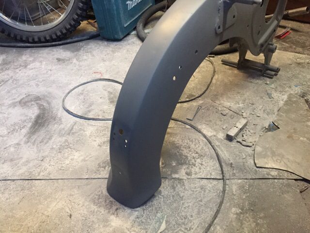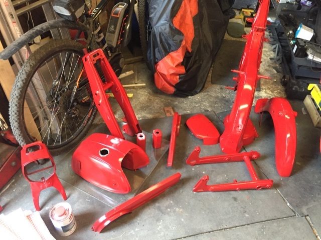 Nice warm day so it was time to spray the little Honda. Usual specs of dust and a few flying insects imbedded themselves in the paint but a light rub down with some 1000 grit wet and dry in a weeks time should sort it out. Just need my son to finish his bike and vacate the bike bench.