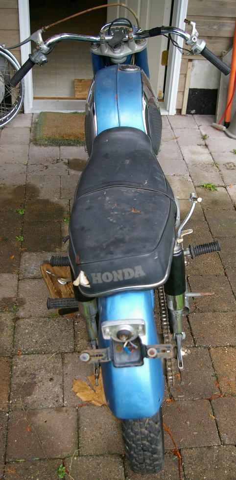 The bike will have to be stripped to the frame for cleaning and repainting, and it looks like the rear fender has already had some body work done to it (probably related to the twisted seat).