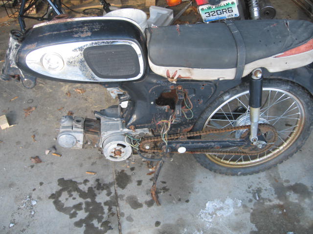 Hey guys I'm kind of new to the motorcycle world. I got these old hondas and I know nothing about them. Is there anybody that may know what models these are ? The one with the front end has an engine that has 99cc stamped on it. I do have the tank and it looks like it was originally a yellow color. I was told the one with no front end was a 1965 maybe and possibly a baby dream. It does have the numbers S65AA015372 stamped on the frame and the motor has 63cc stamped on it. Any info on them would be great. Also I,m not sure if they would be worth restoring or just using them for some parts or what. Thanks