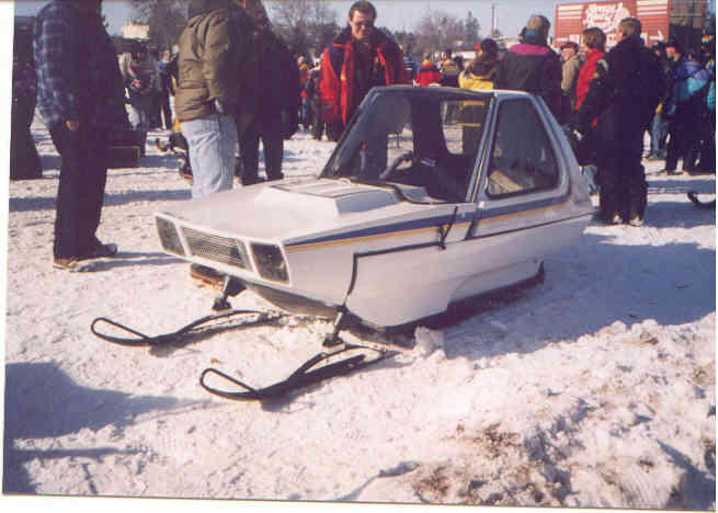 i was digging through some pictures and i found a picture of a snowmobile i worked on for a guy about 10 years ago. it's a 1968 Snocoupe , one of about 160 made i believe. the original JLO engine was replaced with a 583cc Rotax liquid cooled engine , radiator from a Honda interceptor motorcyle to cool it , 3-speed jeep transmission was added between the engine and the torque convertor so there was a reverse , CD player ,turn signals ..and a heater some some small sports car to keep the cockpit toasty warm