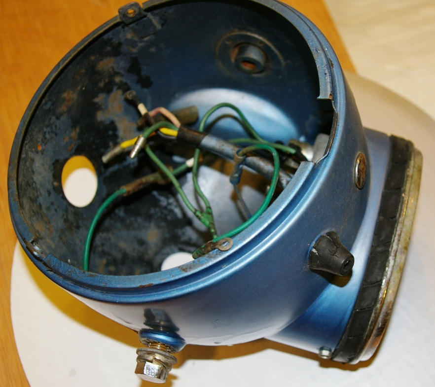 Looks like I will have to repaint the inside of the headlight bucket as well as the outside. I really want to not have to look at runny metallic blue paint any more...ever. Rubber something or other for the headlight switch knob?