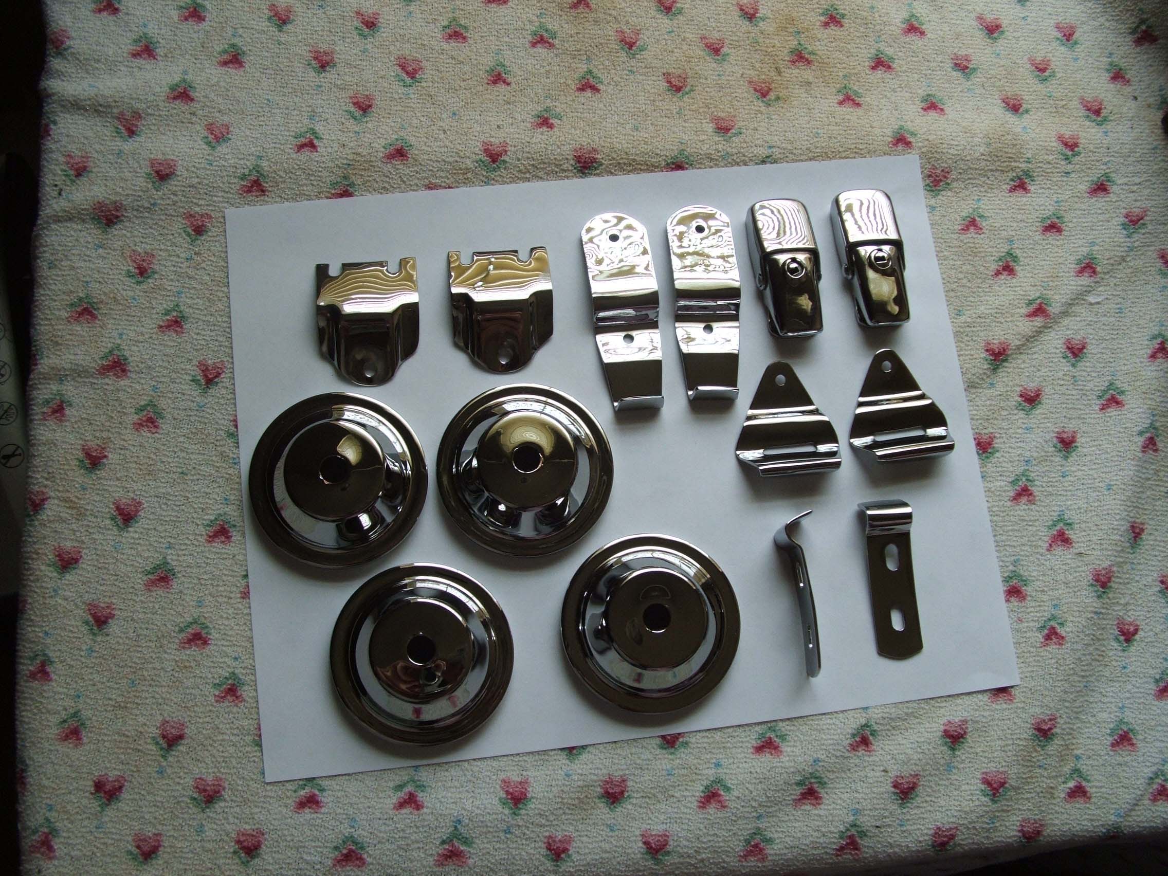 im getting mine blasted and powdercoated now for under $50 bucks. im only missing the two pcs that go around the mufflers.Hoosier Tom wrote:Don't know how much chrome job would be, but I would probably go with powdercoat instead of paint as it should be more durable. Coater should blast all the rust off and rough it up, giving the powder coat a good surface to flow over and bond to when it bakes.