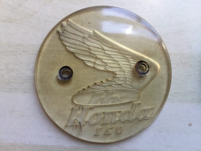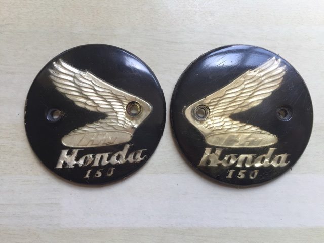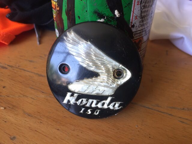 As I started to get all the bits together before reassembling the bike I found the tank badges needed replacing. I checked all the usual sites and couldn’t find a suitable replacement, in fact, I did find a pair of original badges with what the seller described as a couple of cracks. One badge was broken in half and he wanted $95 plus shipping. I decided my badges weren’t that bad after all so set about removing the black paint and what remained of the original silver. Most this just picked off with the fine pointed scalpel, I then painted all the black areas and while the paint was still tacky laid the badge on some cooking foil, this I gently pushed into wing detail and then trimmed off the surplus. They’re not perfect but the second came out a little better as I used a wooden cocktail stick point the apply paint to the very fine detail areas. These will do until I come across something better.