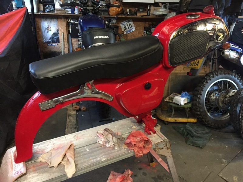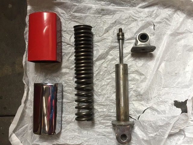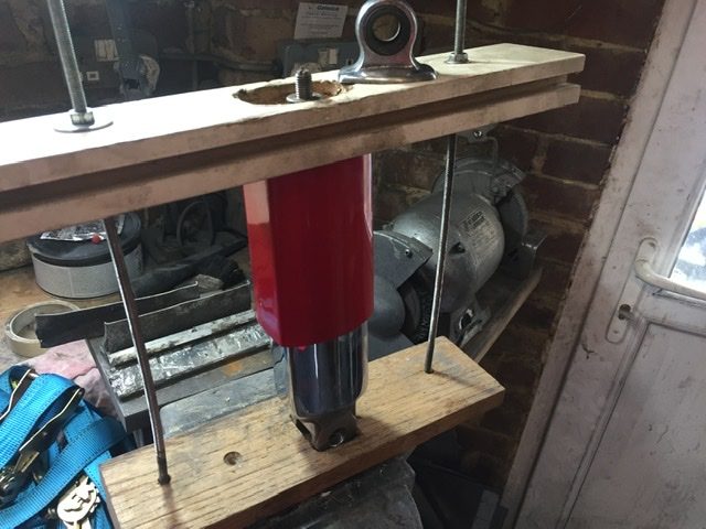Rear shocks rebuilt, the homemade spring compressor works well. I had to respray the front mudguard as I went through to the primer along the edge, amateur mistake.