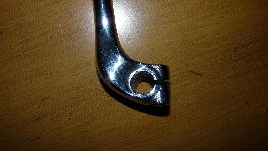 HONDA in their wisdom indexed all the KS parts so the lever will be at a position which has it clearing your arch and gives the best kick angle.