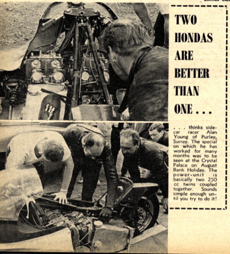 Thought you might like this little snippet of a 4-cylinder CB72 based racing sidecar. This was in the October 1965 Motorcyclist Illustrated.