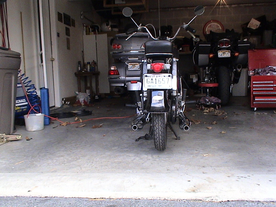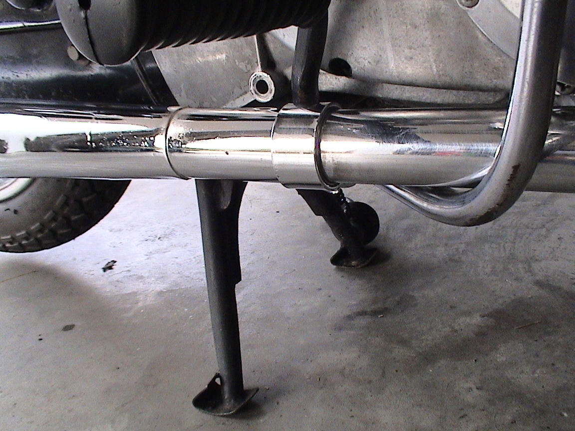Also adjusted the right muffler up and in by levering a board under the muffler while it is mounted on the bike.