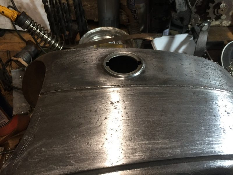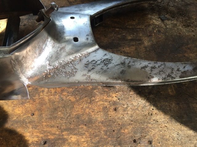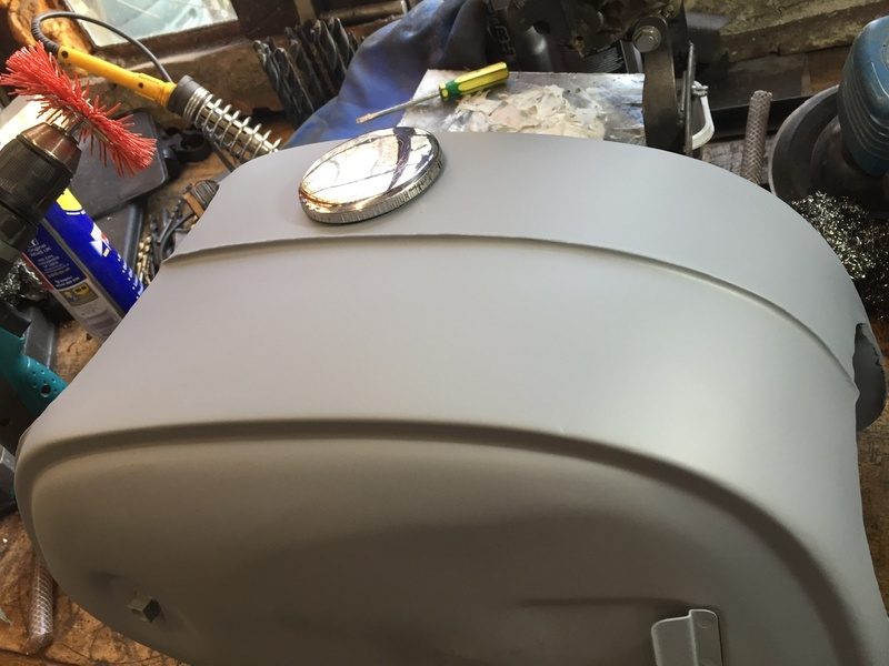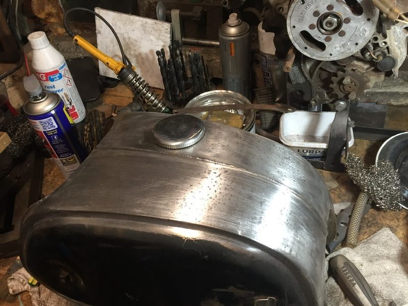 A little more progress, this time on the tank. The inside was remarkably rust free, I assume because the last time it was on the road was 1978 so pre ethanol and its related corrosion, even the tap was clean and not corroded. The headlamp surround unfortunately is quite heavily pitted so no amount of sanding will make that look right. I’ve removed all the loose rust and paint and treated the metal to remove any rust sitting in the cavities. I’ll need to skim it with filler before flatting it and applying the primer.