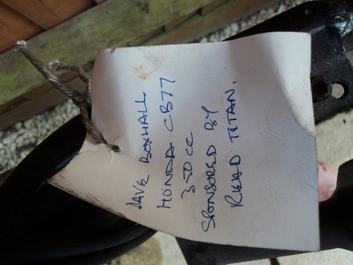 All I know about the bike is what was written on the label, I believe the collector was trying to amass the parts to put it back to its original spec. The racer Dave Boxhall like I said was an Australian who I assume used to race the bike in the UK; details on this were sparse.