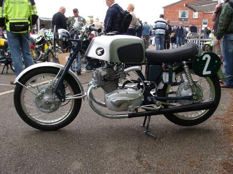 CB77 based racer at Snetterton CRMC Race of The Year. Nice Yamaha front brake. Probably more than enough for the 350 CB77 motor in any state of tune.....