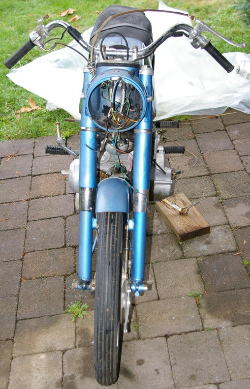 Last November someone gave me what he called, "Old Blue", a 1963 frame with a 1965 engine. I travelled half a day to pick it up 'sight unseen' and another half day to bring it home whereupon my wife looked at it sideways a few seconds before calling it a "bit of an Ugly Betty". My father-in-law looked at me sideways a few seconds before saying nothing.