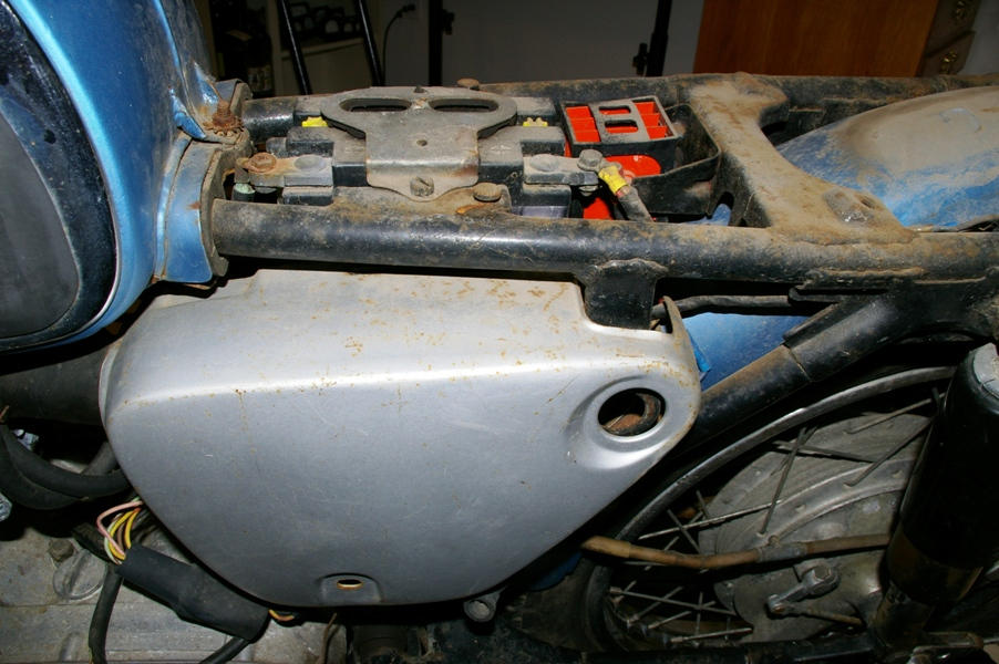 At least the side covers are in pretty good shape. The selenium rectifier will be replaced with a silicon bridge but there should be lots of room to mount it, along with a winker relay, to the existing bracket.