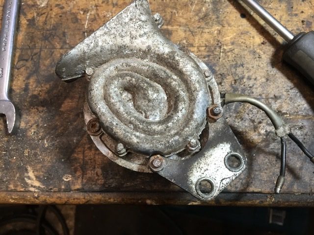 A couple more pics of the restoration. I used the home chroming kit to sort the rusty gear lever out and the bike will need a few more parts re-chromed. This is absolutely the wrong way to go about chrome plating at home. The actual plating process takes about 10-15 minutes but the prep takes a long time especially if the parts are very pitted. Also, the chemicals need to be laid in a logical sequence and up to temperature. If I was sensible, I would gather all the parts that need plating, spend a day preparing them and get the electrolyte up to temperature and then do them together but I don’t.I tend to do them as and when I come across them in my pile of bits. The horn was not working but a strip down and cleaning the contacts brought it back to life.
