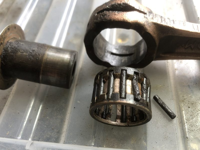 While I agree with all the advice given regarding flushing I just thought I’d share a photo from a crank from a Yamaha RT2 my son bought. We knew the piston was seized due to corrosion but once freed off and the cylinder removed the crank felt ok and ran smooth with no signs of a problem. Seeing the amount of corrosion in the main bearings we got the crank pressed apart just to be sure, lucky we did! It was dire, yet it felt smooth with no play at all.