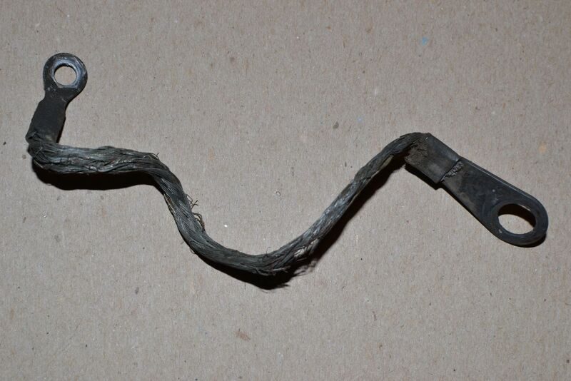 Thank you. It looks like this is the ground cable from the condenser to motor mount. Put it on and I could still see the "ghost" image of where it had been attached for the last 59 years. How many times have I said to myself, "Oh, I'll just remember where that goes", and a few months later have no idea. If I ever do another project like this again I am going to take a lot more reference photos because I don't know how many times I have flipped through them.