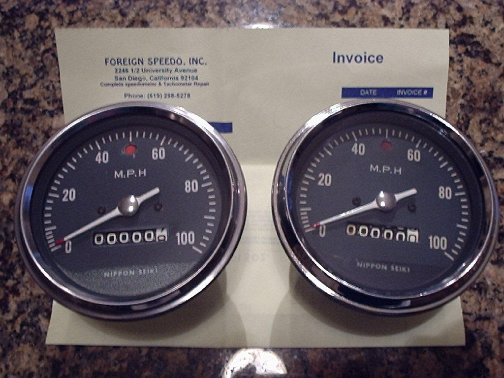 Preston called today (12/19) and the total repair cost with return shipping is $203 for both units which included the required parts. He will ship today and I should have both speedometers within the week. I emailed Bill Silver this week and he mentioned he saw my speedo's in the repair line at Foreign Speedo, Inc. and it should be soon, so I was expecting the call. This experience has taught me one thing, I will never purchase another 40+ year old speedometer unless it has been rebuilt. I will post again when I get the speedo's and see how they work. More to follow. G