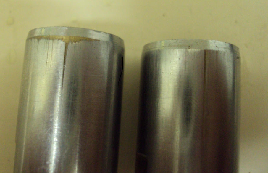 First thing I noticed is the throttle valve's (from both carbs) have some decent ware and groves. Ware down to the brass on one of the valves. Most of the ware and deep grooves are on the top end of the valves (the cable side not the carb side) But there are little dings on both edges...