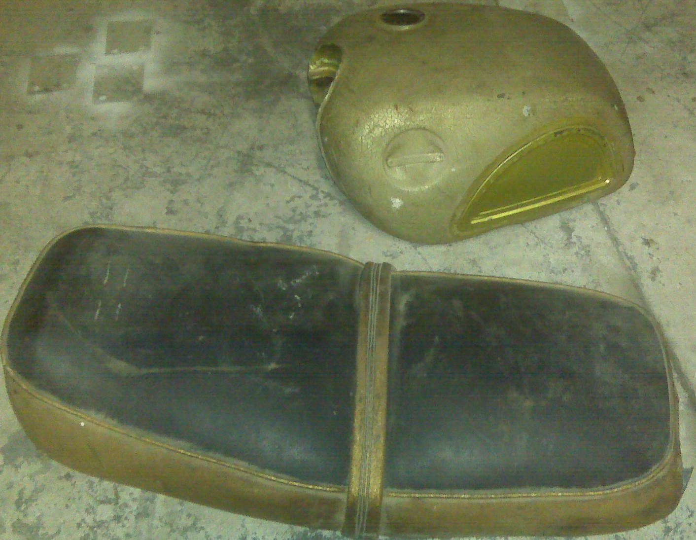 '65 Scrambler I bought it in pieces in 1973. Here is a picture of the tank and seat. The tank has wrinkle paint. Is this the color? Anyone ever seen this combo before? If not factory, this paint and seat were really well done.