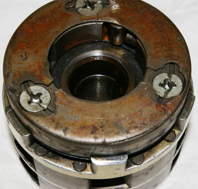 I noticed a film of oil on the guts of it and also on the outside surface of the starter sprocket so I'm sure I'll need a new sprocket seal. The rollers are a bit under the new spec of 10.2mm (they range from 10.127 to 10.163mm). Spring caps show some wear and two of the springs are under the 24mm replacement length. The screws holding the clutch outer to the rotor are still tight and I'd just as soon not mess with them if I can simply replace the rollers, cups and springs.