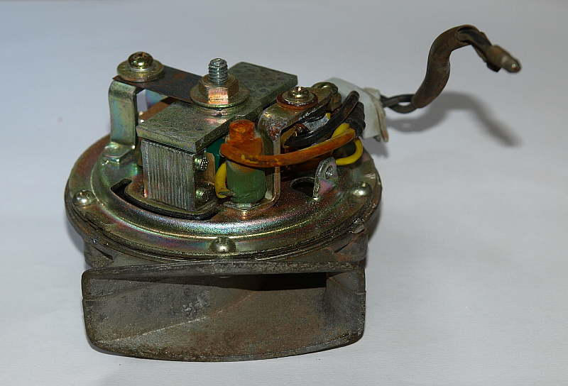 For the rectangular "grommet" on the horn dome that the two wires pass through, I've carved my own from a chunk of rubber (usually a section from an old automotive suspension bushing), Yes, the color is not the stock grey, but it keeps the contaminants out. This would really be a great item for someone to repro, but that's probably been hindered by no one being able to furnish a good sample, as they seem to decompose more than any other item on these bikes. If you do disassemble the horn, there is a thin gasket between the horn mechanism and the housing that does seem to help the volume, so try to preserve it. Regards, Chase