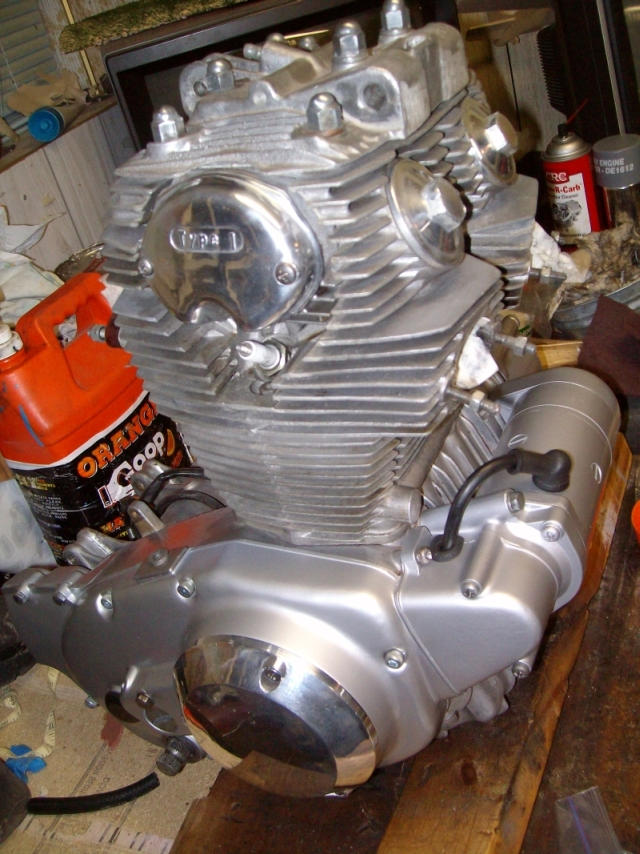 I cleaned an painted the motor without tearing it down. I took the side covers off and painted them. The bare aluminum parts I just cleaned with engine cleaner, mineral spirits, or what ever worked. I used tooth bushes, q-tips and a lot of rags. I did use a nylon brush in a hand drill for the fins and polished the side covers.