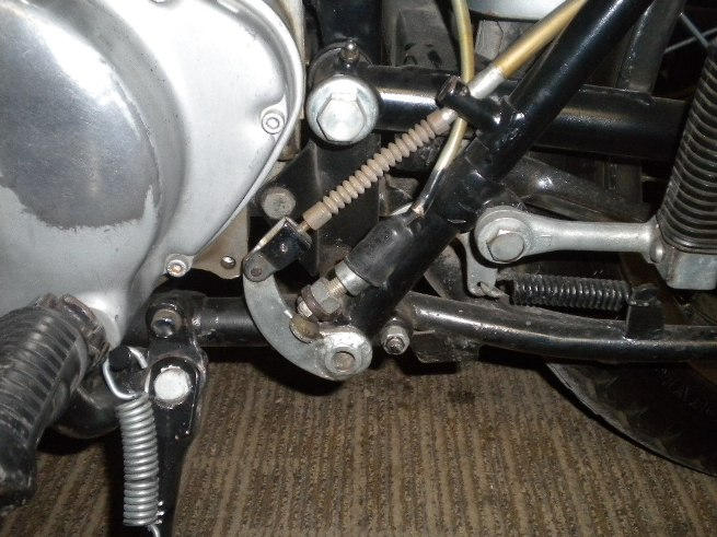 Guys, I am putting my 1965 CL77 back together and I cannot find where the brake pedal return spring goes. This is the little one that attaches to the post on the rear brake spindle (part # 46514-273-010). The spring is in this picture resting on the spindle and leaning against the frame - where does it attach at the top?