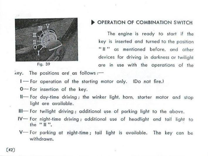 The combination switch on the C/CA Dreams controls not only the ignition & 'park' lighting, but also the headlight (with a separate, autonomous pair of contacts to 'lift' the charge rate [pink & yellow]) and, on some markets' models, an 'emergency' ignition position.