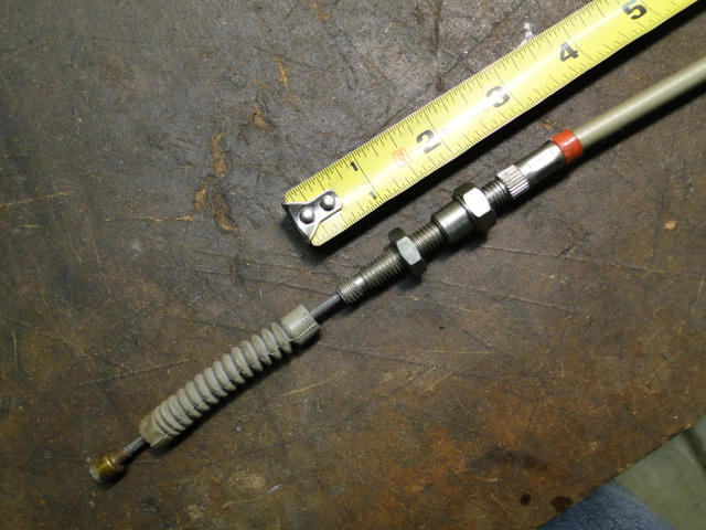 Not really sure what this is from but it was NOS from a rat's nest of cables that I bought from a Honda dealer. I think its Honda, but can't guarantee that either. Note adjuster is swaged to conduit and it has 2 nuts on it - slightly different than a CB77 front brake cable. If you can ID it and you want it it's yours for shipping just email me at swmrescue@cox.net. Measurements as shown and the wire is 46-1/2" tip-to-tip.