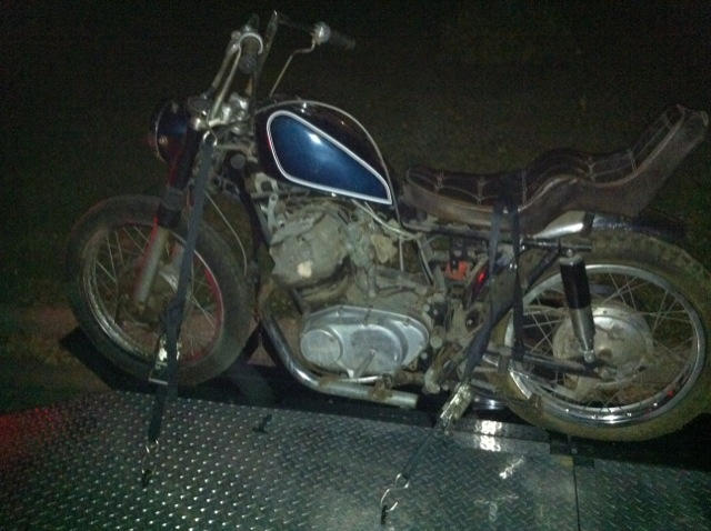 So I bought my first bike and I figured why not a 66 CL77 that has not been ridden since the late 70's. Probably not a great place to start. Some point in the 70's the previous owner tried to turn it into a bobber of sorts. Has a Harley Sportster tank, Z-bars, King Queen seat and straight pipes. It does not have any engine covers. The frame is in remarkable shape since it has been in a barn for 30 years. No rust, wheels are clean. Engine is free and shifts through the gears.
