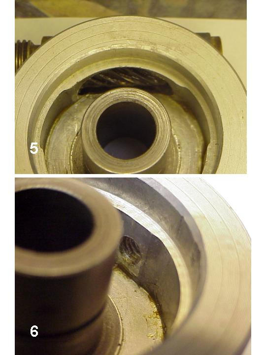 4. That is as far as you need to go if the grease looks decent and the unit is not full of grit or crud. Swab out the rest of the grease and with a small screw driver or similar scoop the grease out of the driven gear which is still in the housing. Be gentle here as the gear is brass. Rotate the gear and clean out each tooth. Rub the grease between your fingers. If there is no grit, you do not need to clean the assembly in solvent. Driven gear is shown in Photo 5.