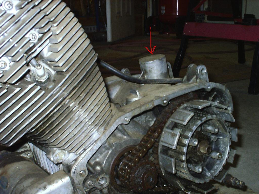 Jensen is correct and ya may want to look on the right side near the chain sprocket and see if the breather valve is still there.