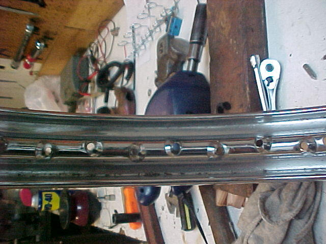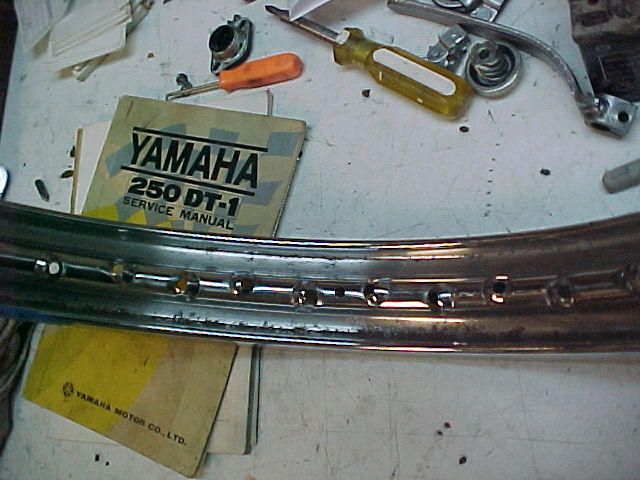 I think the wheel in the first pic is from a CB450, or early CB350, as the brake is smaller. You need a 66-7, large hub front wheel for your bike. It does have the aluminum sliders. I have a decent rim, a complete set of re-plated in canium spokes, and I could polish up a hub and lace them all together for you. Here's some pics of rim. Not show quality by any stretch, but good for a rider.