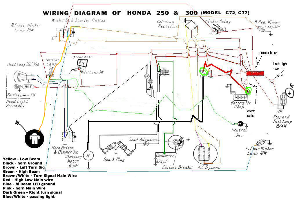 Here is a revised drawing, I forgot the winker relay and corrected the starter solenoid.