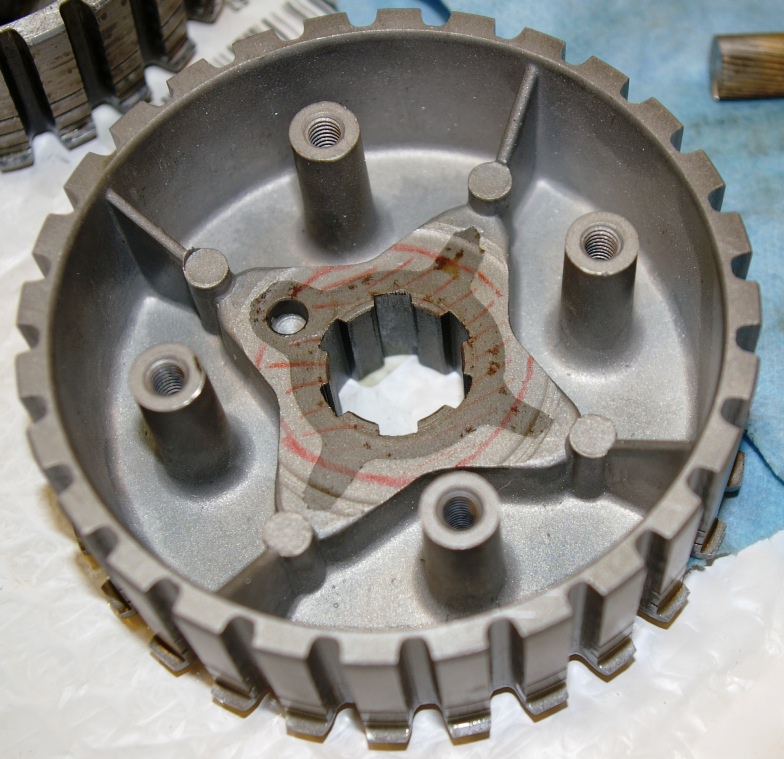 I have no idea what a PO may have done to this clutch, and without part numbers stamped on the clutch parts I really don't know what clutch center, outer, plates and friction discs I have. I'm thinking I should replace the metal clutch plates and the friction discs, but with so many clutch changes over the years, I'm at a loss as to what and how many I should replace.