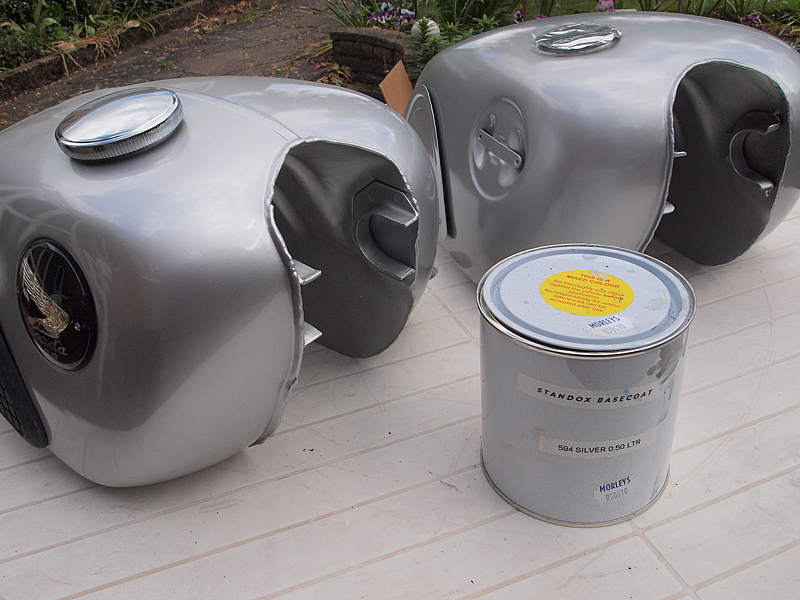 The NOS tank is on the right of the picture. It's a bit difficult to show the comparison in a picture but the Standox is perhaps a shade lighter and sparkles a bit more with a two part system (clear over base). I'm happy with that.