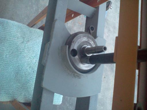 The second pic is the jig I made in action in a 12 ton press. Jig is resting on a new cross-bar that I made up. You need a 1/8" spacer for the end that goes farthest into the jig because the inside surface of the counterwieght is not flat. Got some good pressure on it and then hit it with a 3 pound drilling hammer. It moved a little and then the press did the rest of the work. Have someone catch the rest of the crank or the con rod could come off and scatter those little roller bearings to Kingdom come. I caught both this and the donor crank, and avoided that problem, but did briefly lose one of the rollers from the donor crank. They are pretty small.