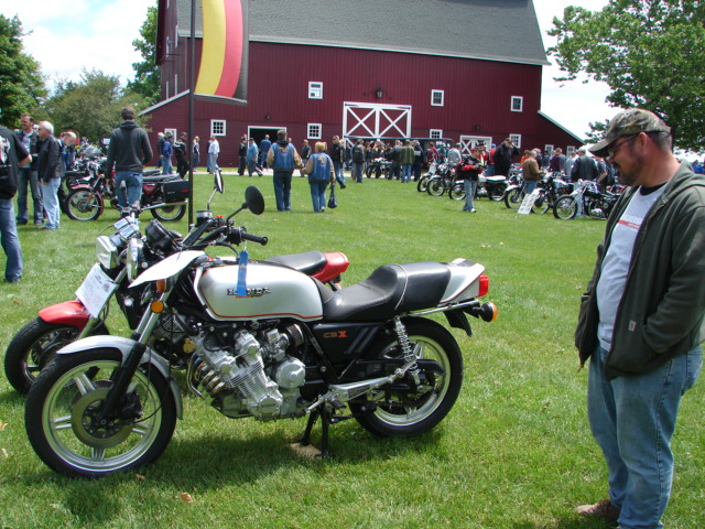 Just a couple of pic here from the Gilmore show today. Son Andrew and I had a great time, and a good visit with Shanepeeler and Goodysnap. I attach a pic of Goodysnap and his ride, and of Shane admiring a (non 305) Honda.
