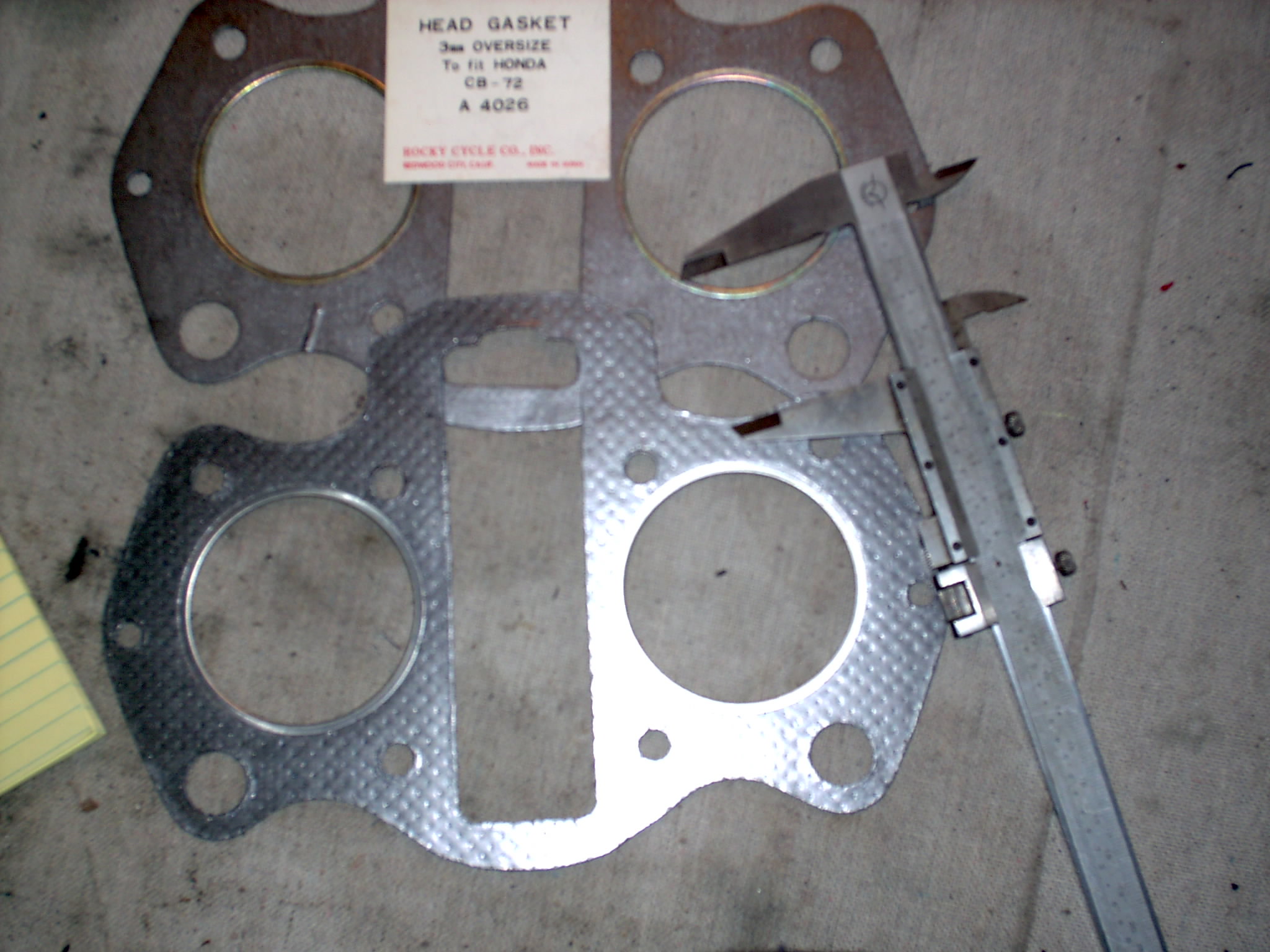 Thanks Kevin, awsome service. for anyone interested, after hearing from both LM and Les Barker that "maybe" a stock 305 gasket might work, here are a couple measurments. the Rocky +3mm gasket = 60.15mm, so 3.15mm over bore. the stock 305 (DK) gasket =62.5mm, so 2.50mm over stock bore. so my thinking here is that the stock 305 gasket might work at 5.5mm over bore. anybody have a real Honda gasket to measure?