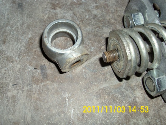 First step of the dis-assembly was to remove the top bracket from the shock assembly by using a wrench to hold the lower bracket and screwing off the top round holder.