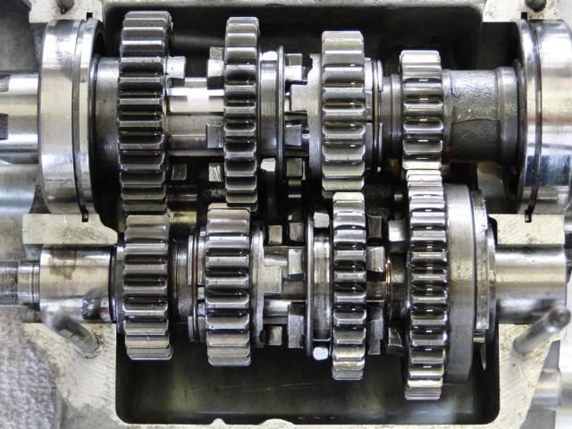 I attached a picture of the trany in second gear. The two middle gears on top are engaged by the "dogs." You can't see the offset cotters, but they position the stationary gear on the right, over to the left a little for more engagement.