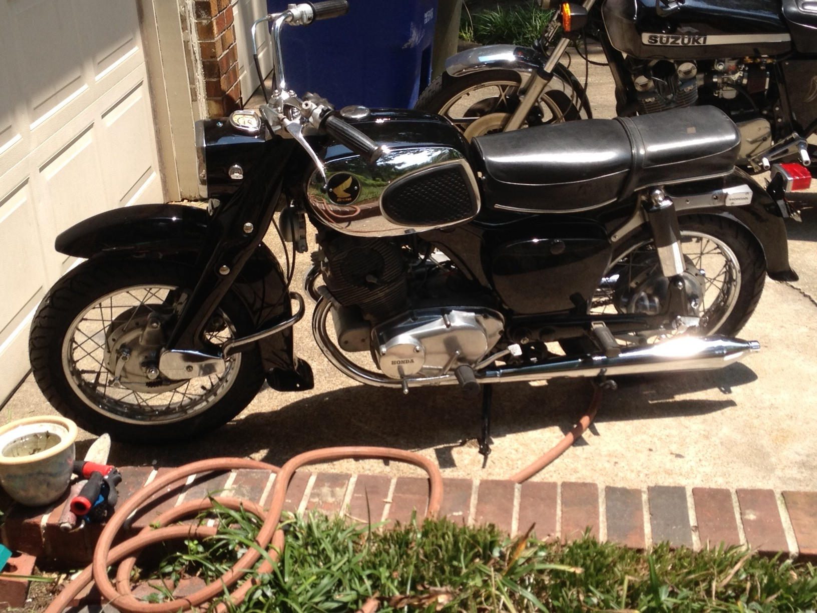 Been banging away on my '63 Dream, finally getting the thing back into shape after it's long sleep (been off the road since '78). It's looking a lot better than when I got it (see pic), but I had posted earlier about a smoking cylinder and whether I should open the engine up and check the rings. I got mixed responses, some saying I should do it now, others saying that the smoking would likely go away after the motor was run in. Well it appears that the fix it now people were right, I decided to take my chances and install the engine back unopened following the restoration, and after a good bit of running it is still seriously burning oil. I have since dropped the engine and opened it up - clean with nothing remarkable (the bike has less than 10k showing), but both oil rings shattered when I tried to remove them. My question (finally) is should I lightly hone the cylinders before reassembling, or just put everything back together with the new rings?