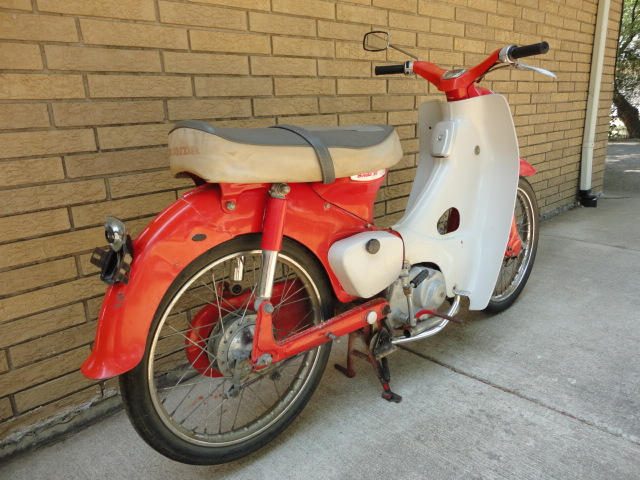 I have a Honda C100 Super Cub 50cc scooter for sale. Not sure the exact year but I believe it is between 1959-1962. As you can see it is pretty complete and original (muffler is missing). Motor kicks over great but not sure when it last ran. Showing typical wear and tear. Odometer shows 4011 miles. I'm asking $650 and I'm in Springfield, Illinois. Thanks.