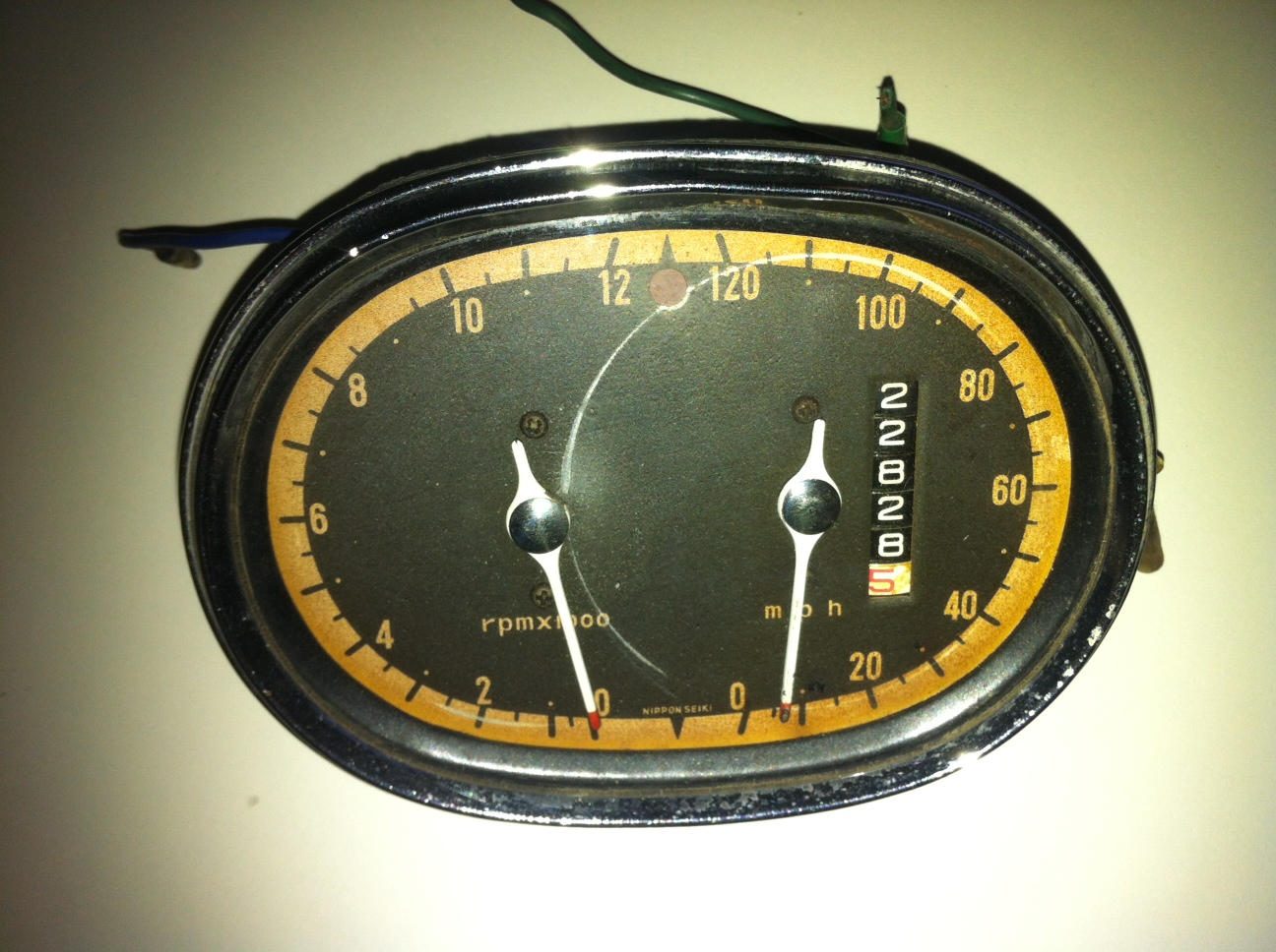 I think this is the earlier type. It's not perfect, but it's complete. The eBay seller said the tach works correctly, but the speedo jumps. Probably just needs to be lubed up.