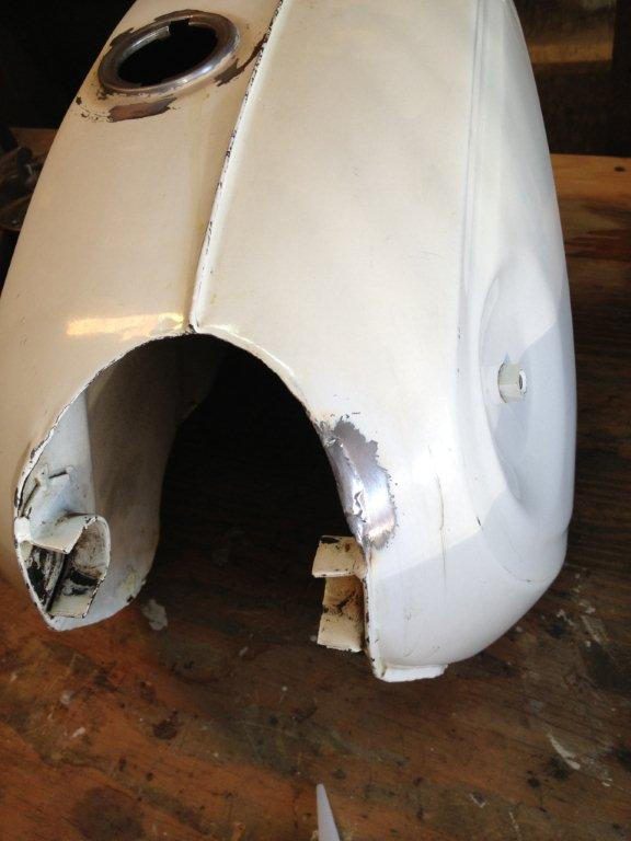 I know the right way is to get it welded/brazed/soldered. The tank paint is orginal and in decent shape( for a 51 year old bike). Hopefully someone can fix it up w/o damaging the paint too bad. I'm going to call a couple bike shops in the area tomorrow and stop by an old school radiator shop.