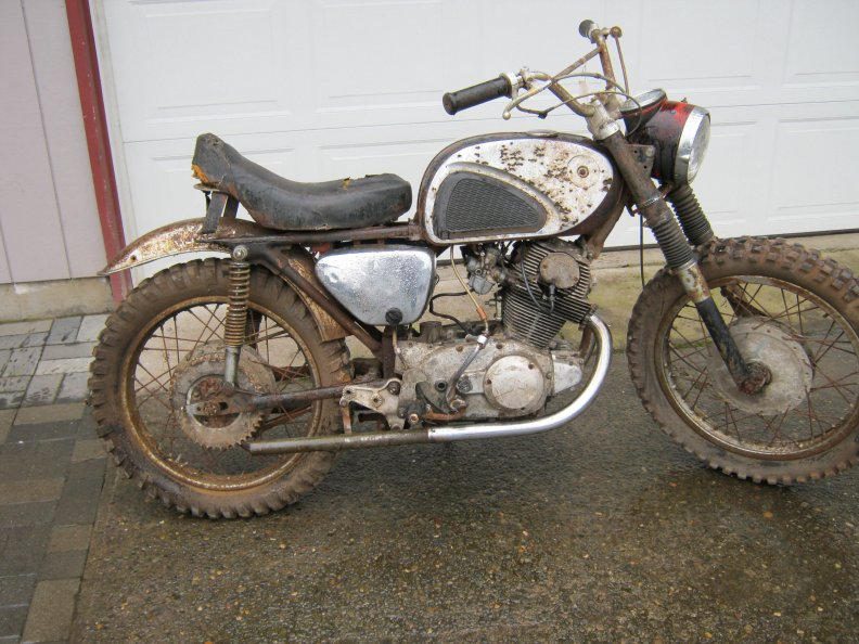 Bought this POS 7 yrs ago and just brought it out of storage. It rolls through with compression so it should run, we'll find out shortly. Tank had a gallon of foul smelling bad gas from probably 30+ yrs ago and I must have dumped out 2lbs of rust. If it runs out okay maybe it should be my new "ratbike", I'll throw some parts at it to make it street legal.