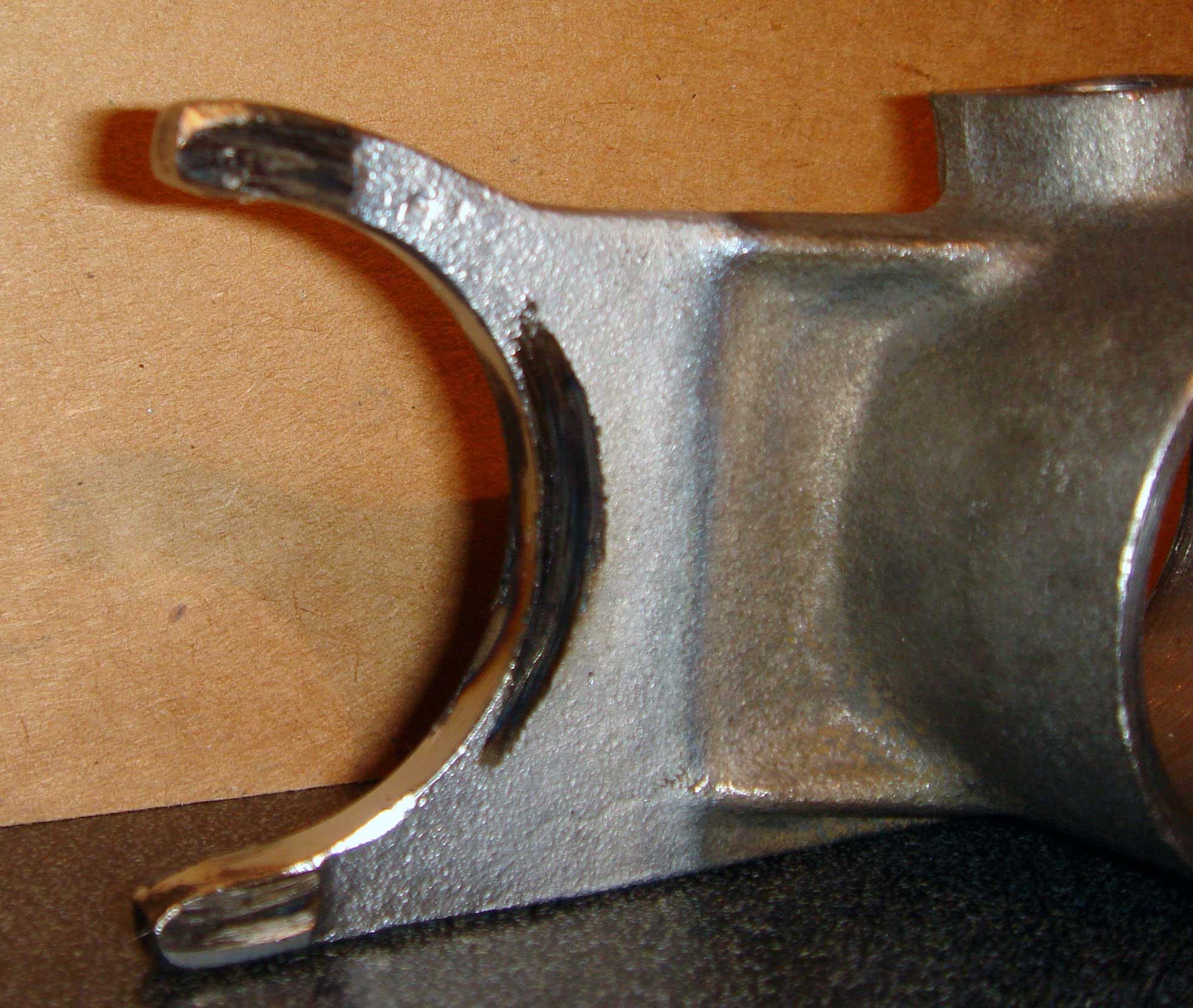 Pictures 4&6 are indeed the same fork, and there's only the tiniest bit of wear at the 3 discolored spots in picture 4 (not even enough wear to catch my thumbnail). Is there any way to recondition the other fork and the gear it mated with if galling is indeed a problem?