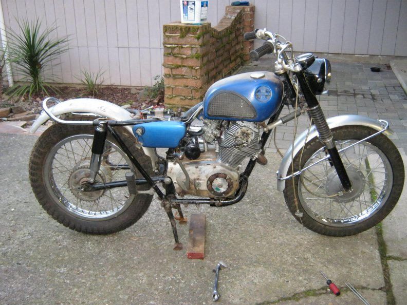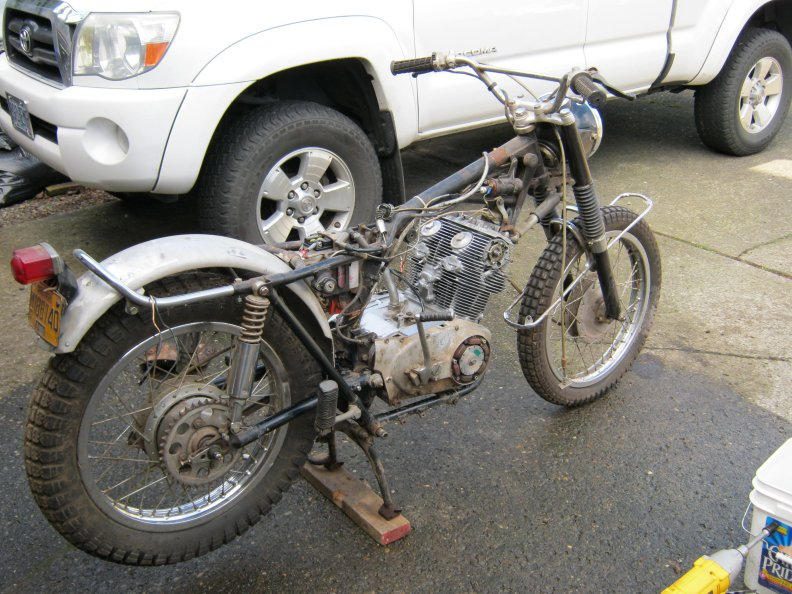 It's pretty much done, a few loose ends to do. Rode it today, seems to run out okay. It's off to the swapmeet on Thursday. It will make someone a good project as it's nearly complete and little to chase down partswise. http://www.youtube.com/watch?v=dTycVviNPVM