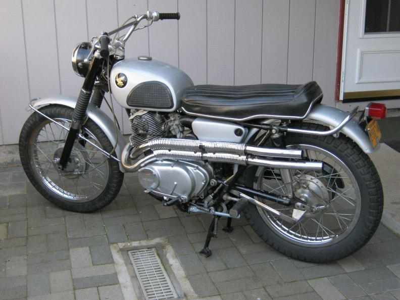 I had to dig out this bike and start getting it ready to move. Big plans for it 14 yrs ago but now I have second thoughts and two other projects that I'd like to spend time on. In it's 14yr stay I robbed the topend to put on a CB72. Built another engine, 2mm over only to rob it for another '65 CL72. Now the original CL72 engine is back in the bike this time as a 337cc. Cosmetically it will be complete but unrestored. Compared to my '61 CB72 startup this one fired right up! http://www.youtube.com/watch?v=Q_VtR__jRpw