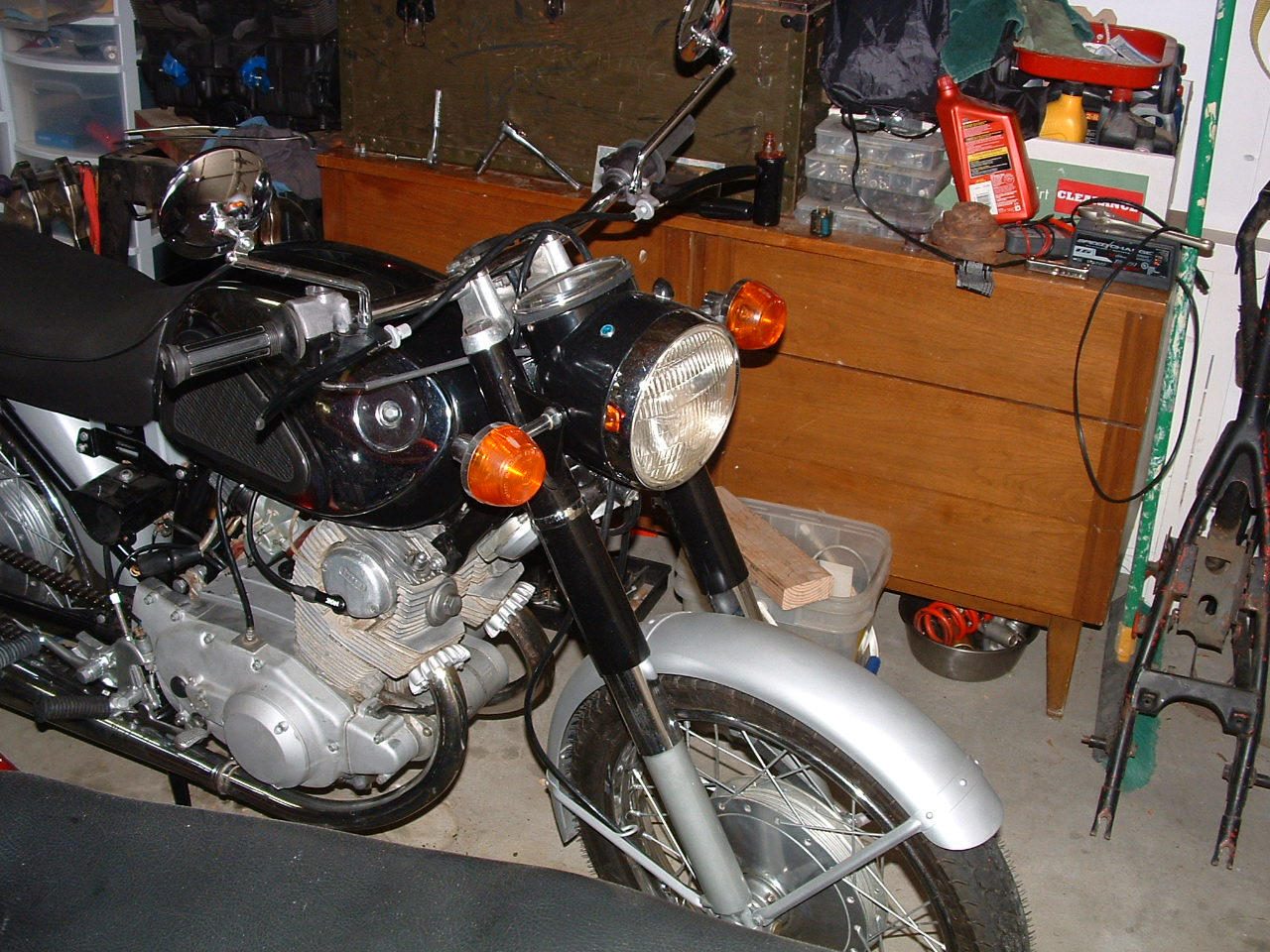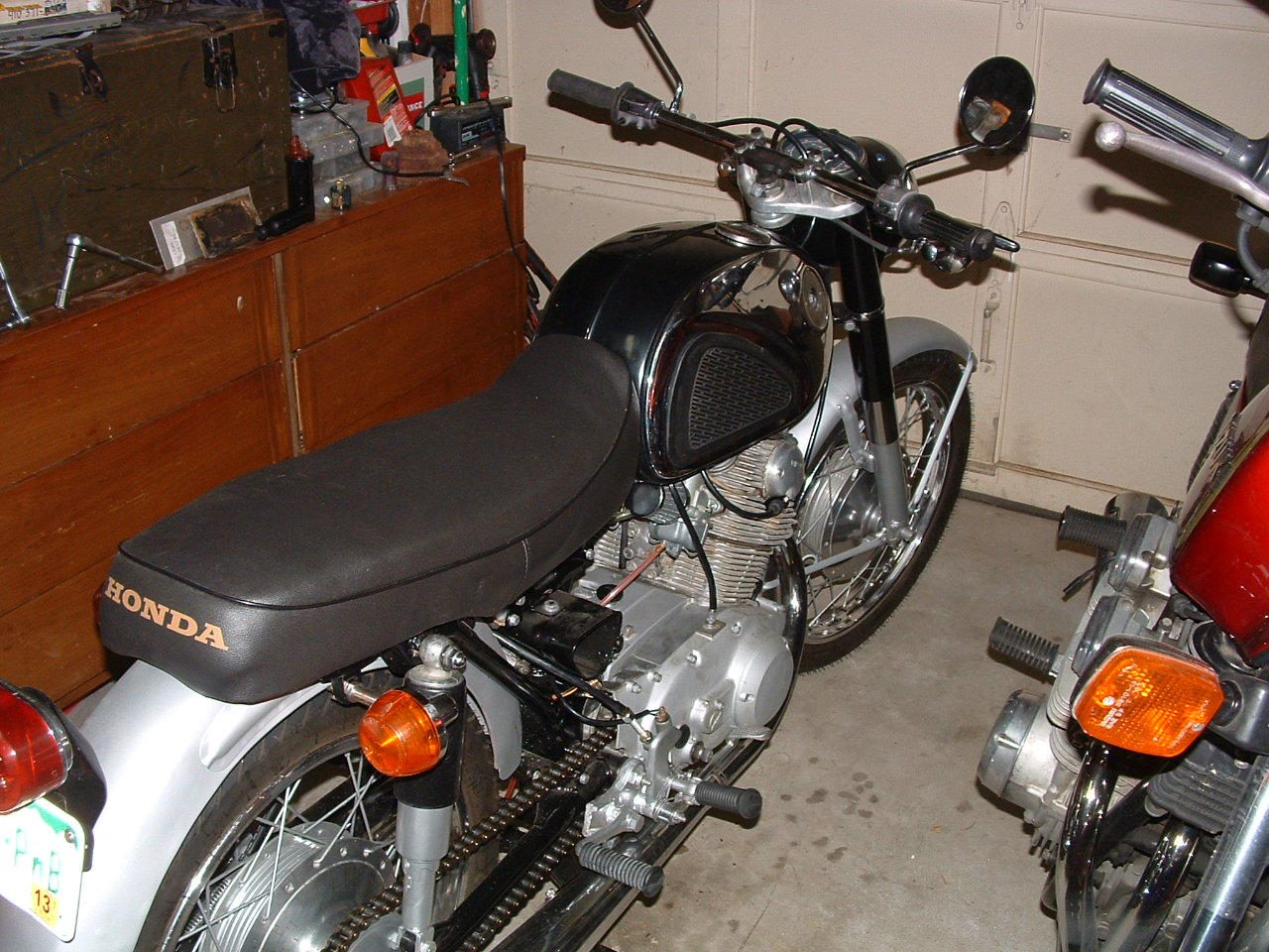 have here a late vin 67 CB77 Superhawk. Finally running after a couple of years. Not a restoration but a fix up. Kept what original parts I could and still looking for a few more... Chain guard, left cover are at the top of the list.
